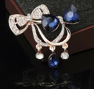 送料無料 メール便 リボン りぼん ブローチ ピンブローチ アクセサリー ジュエリー キラキラ スワロフスキー ビジュー ラインストーン ブルー 青 女性 レディース おしゃれ かわいい フェミニン 女子力 キュート クリスマス 誕生日 母の日 プレゼント 贈り物 ギフト セーター マフラー 帽子 ニット ワンポイント 2